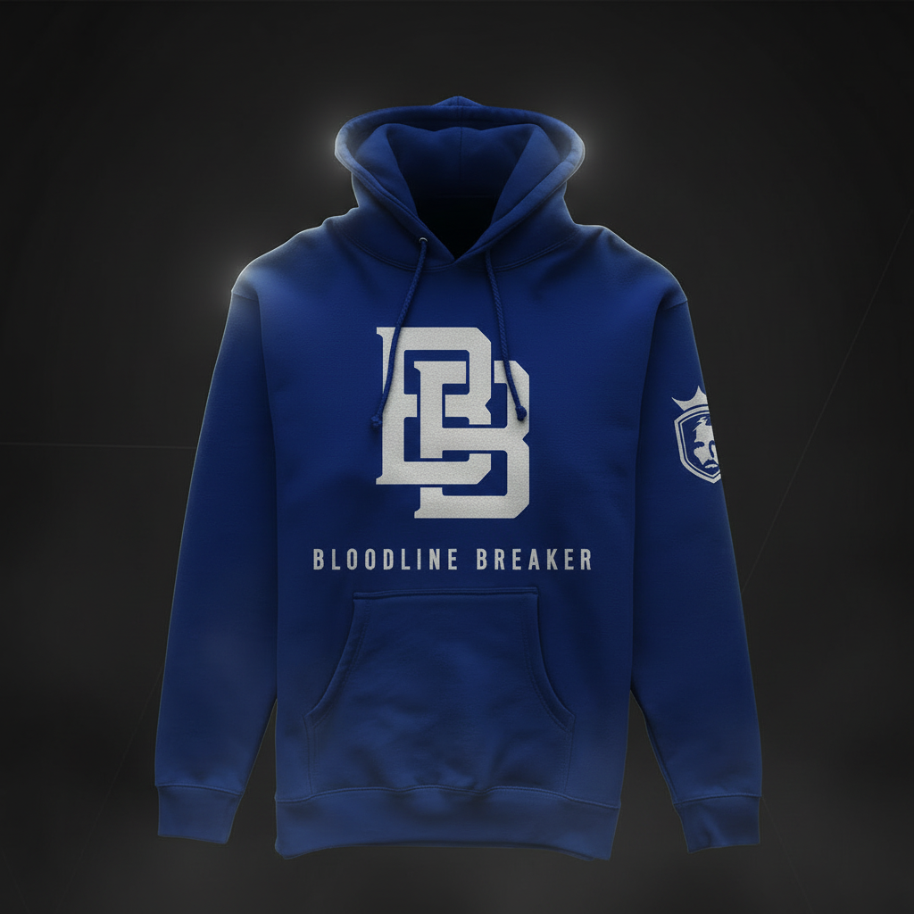 This "Bloodline Breaker" hoodie in royal blue is a bold expression of personal transformation and spiritual breakthrough. Featuring a prominent white "BB" logo and text, this design symbolizes breaking generational cycles and walking in newfound freedom.